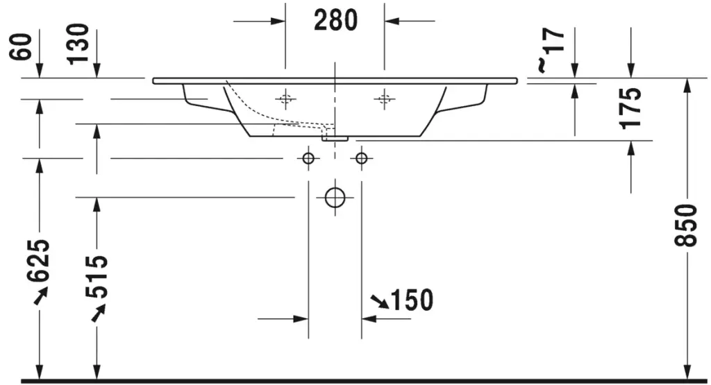 Duravit Me by Starck Раковина встраиваемая сверху 123x49 см, с переливом, цвет: белый глянцевый 23361200601