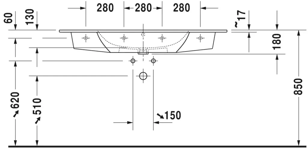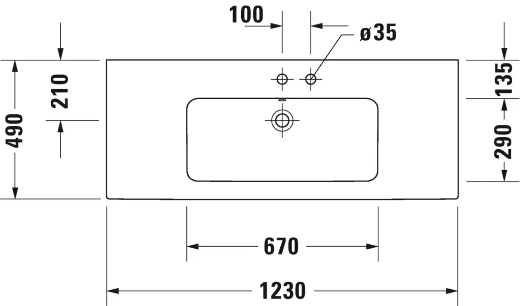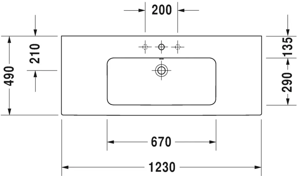 Duravit Me by Starck Раковина встраиваемая сверху 123x49 см, с переливом, цвет: белый глянцевый 23361200601