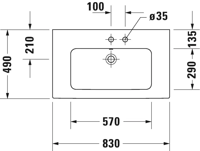 Duravit Me by Starck Раковина подвесная прямоугольная с 1 отв 83x49x18h см, цвет: белый 2336830060