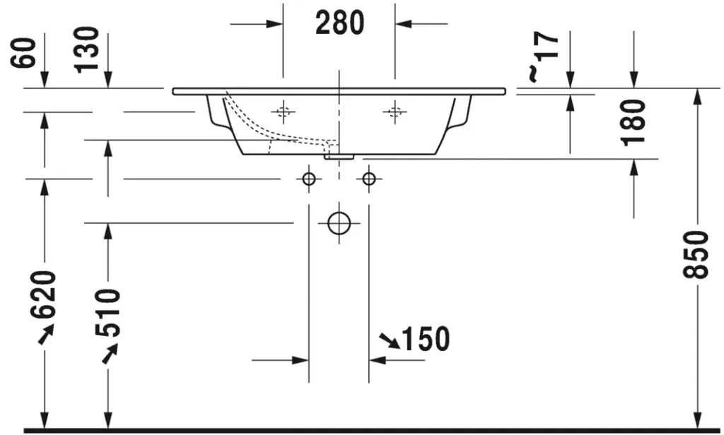 Duravit Me by Starck Раковина встраиваемая сверху 123x49 см, с переливом, цвет: белый глянцевый 23361200601