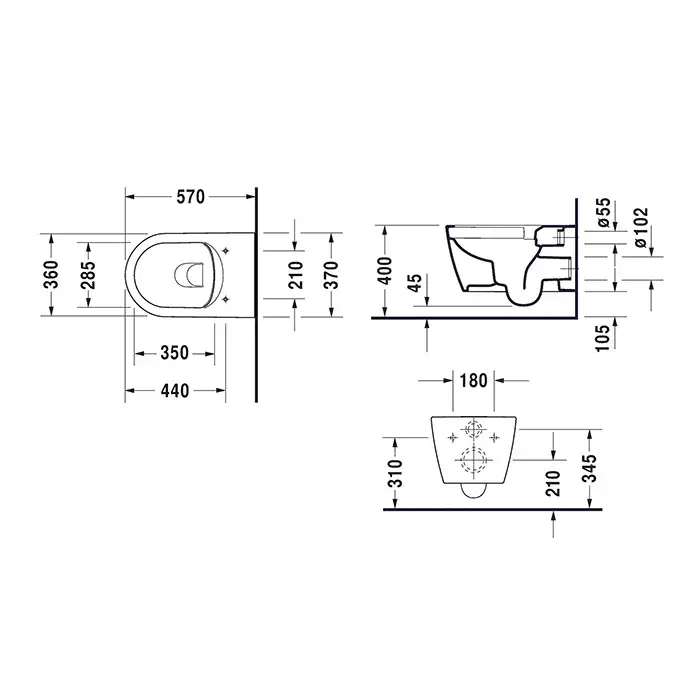 Duravit Me by Starck Унитаз подвесной безободковый 37x57 см, цвет: белый матовый 25290926001