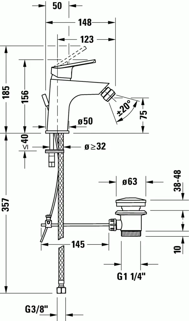 Duravit No.1 Смеситель для биде, однорычажный, с донным клапаном, цвет: хром N12400001010