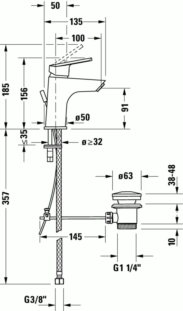 Duravit No.1 Смеситель для раковины S, однорычажный, с донным клапаном, цвет: хром N11010001010