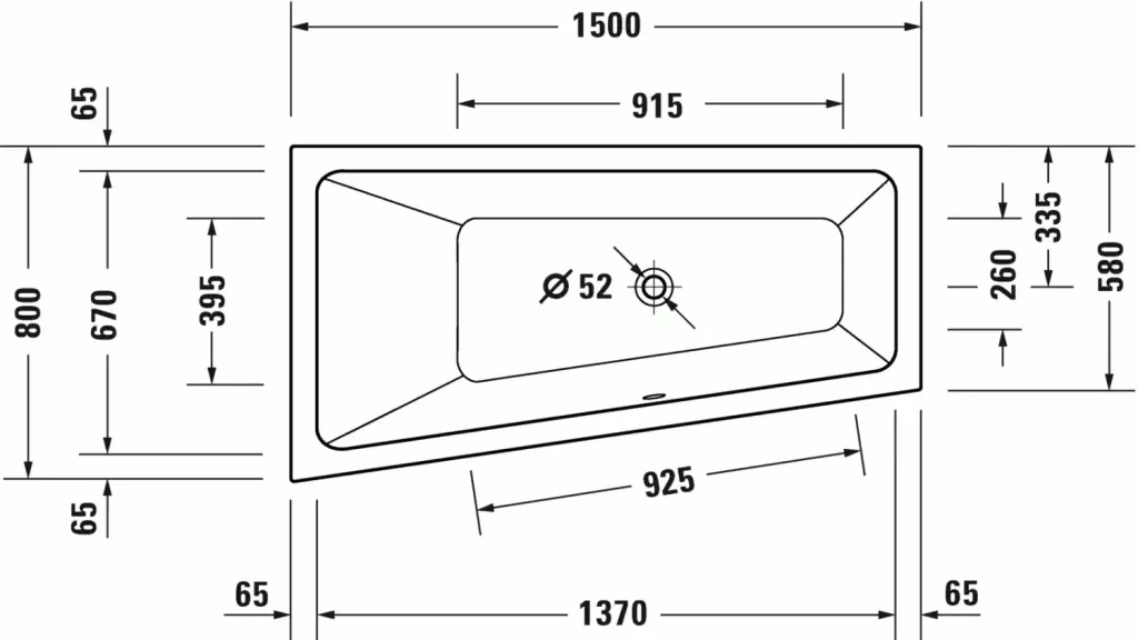 Duravit No.1 Ванна акрил. встраиваемая угл. левая 150х80х48h см, цвет: белый глянц. 700504000000000