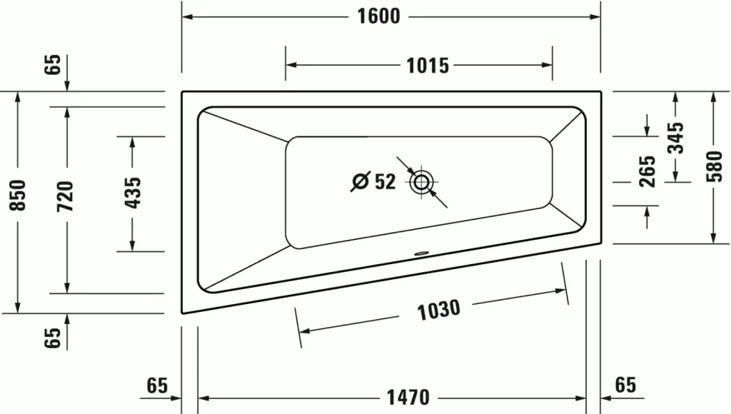 Duravit No.1 Ванна акрил. встраиваемая угл. левая 160х85х48h см, цвет: белый глянц. 700506000000000