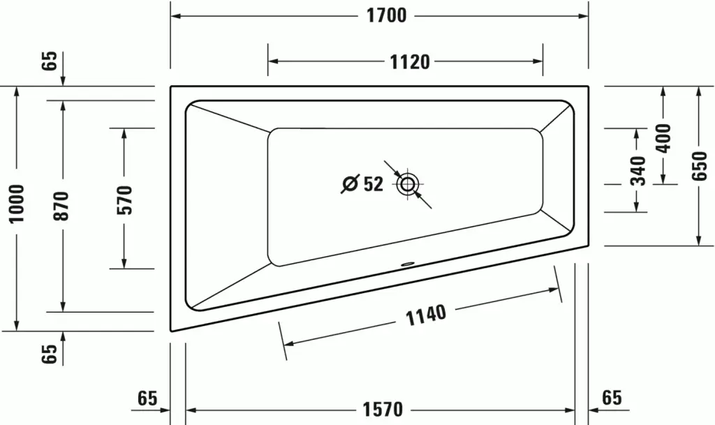 Duravit No.1 Ванна акрил. встраиваемая угл. левая 170х100х48h см, цвет: белый глянц. 700508000000000