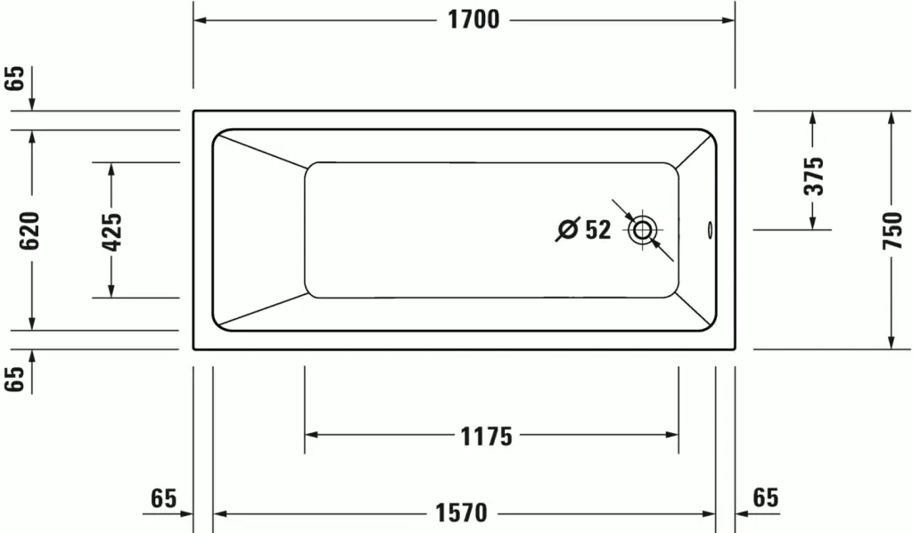 Duravit No.1 Ванна акриловая встраиваемая 170х75х42h см, цвет: белый глянцевый 700490000000000