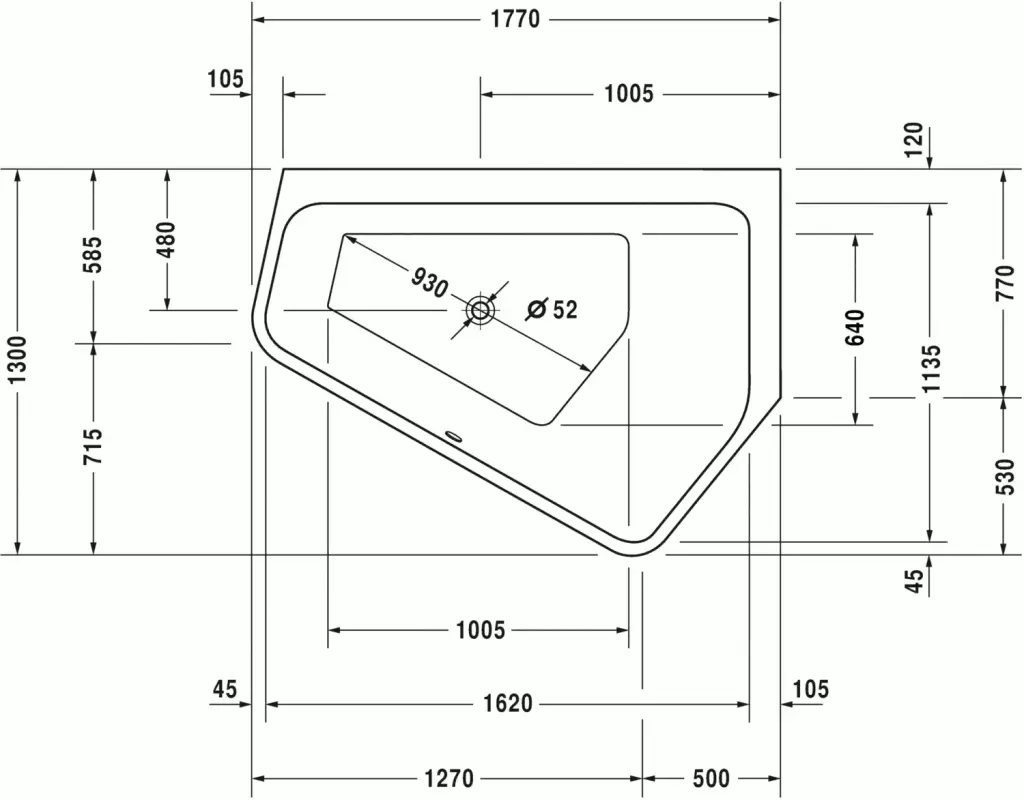 Duravit Paiova 5 Ванна акрил. встраиваемая угл. правая 177х130x46h см, цвет: белый 700391000000000