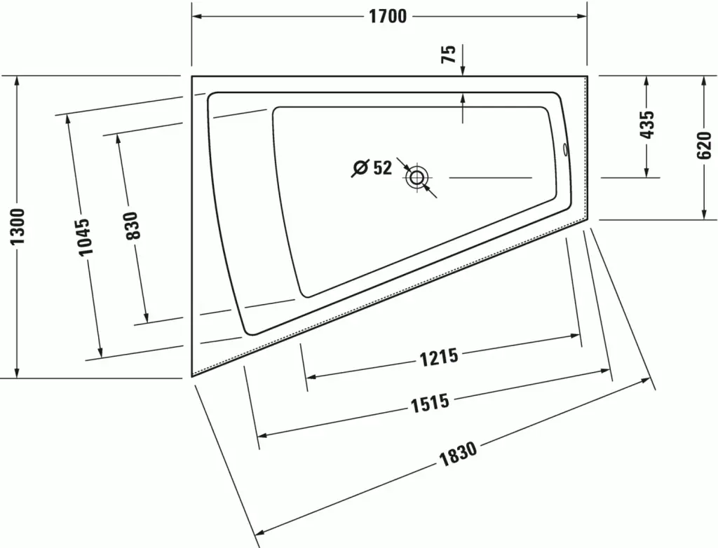 Duravit Paiova Ванна акрил. встраиваемая угл. правая 170х100x48,5h см, цвет: белый 700213000000000