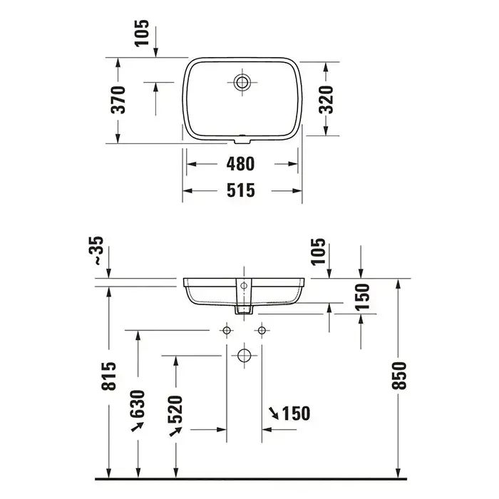 Duravit Qatego Раковина встраиваемая снизу 51.5x37 см, с переливом, цвет: белый глянцевый 0398480028