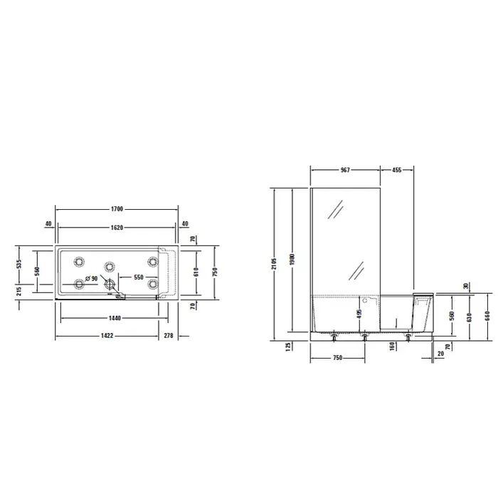 Duravit Shower + Bath Ванна с дверцей акриловая прист. 170х75x210,5h см, цвет: белый 700455000000000