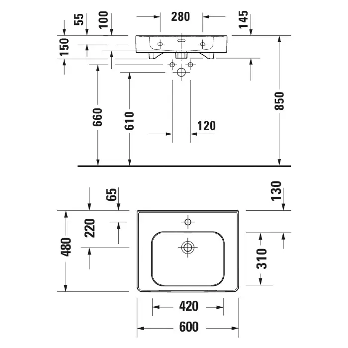 Duravit Soleil by Starck Раковина подвесная 55x48x15h см, с переливом, цвет: белый глянцевый 2376550000