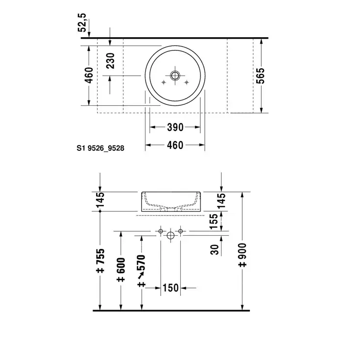 Duravit Starck 1 Раковина встраиваемая сверху без отверстий 53х53x16,5h см, цвет: белый 0447530000