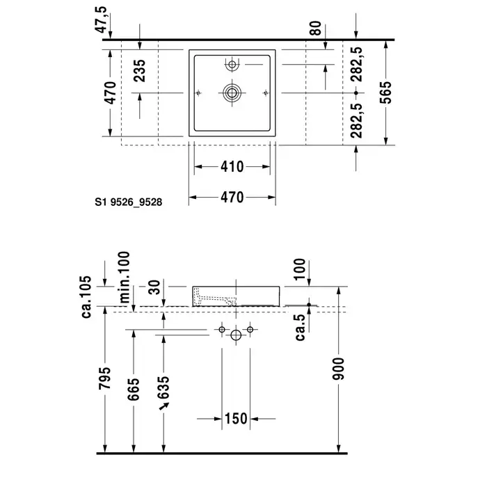 Duravit Starck 1 Раковина встраиваемая сверху без отверстий 53х53x16,5h см, цвет: белый 0447530000