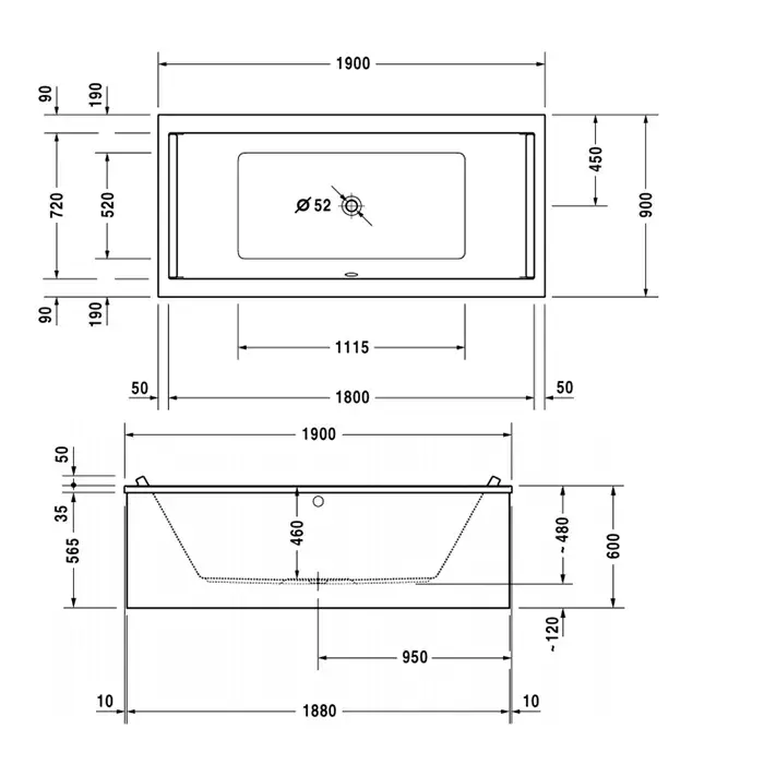 Duravit Starck Ванна акриловая прямоугольный вариант 190x90 см, цвет белый 700340000000000