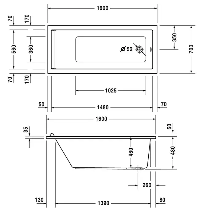 Duravit Starck Ванна прямоугольная 160x70 см, встраиваемая, акрил, цвет: белый 700333000000000