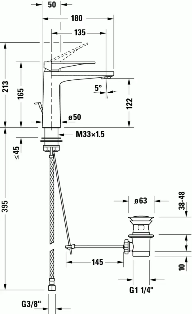 Duravit Tulum Смеситель для раковины М FreshStart, с донным клапаном, цвет: хром TU1021001010