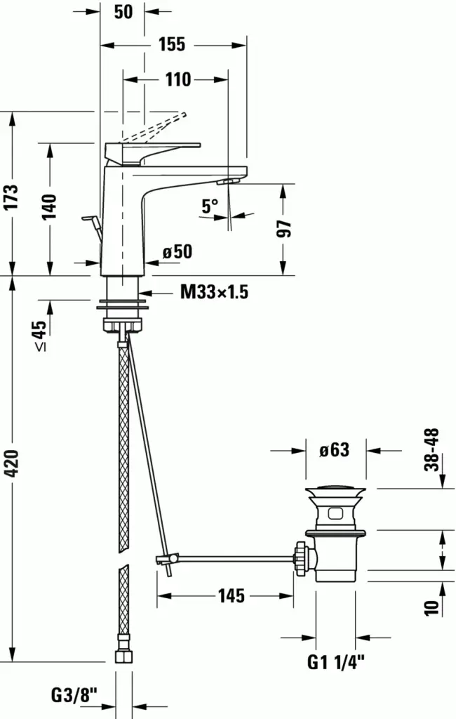 Duravit Tulum Смеситель для раковины S, однорычажный, с донным клапаном, цвет: хром TU1010001010