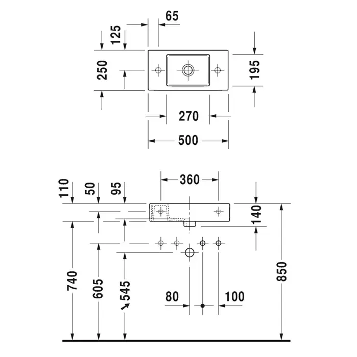 Duravit Vero Air Раковина подвесная прямоугольная с 1 отв 45x35x16,5h см, цвет: белый 0724450027