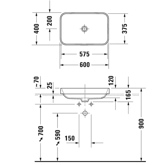 Duravit Vero Air Раковина встраиваемая сверху на 1 отверстие 55х45,5x16,5h см, цвет: белый 383550000