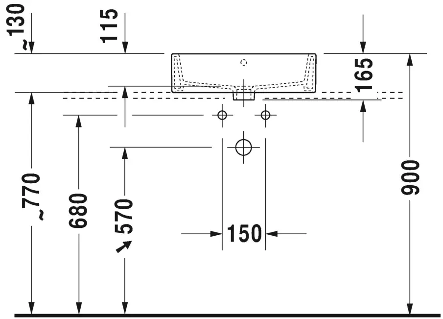 Duravit Vero Air Раковина встраиваемая сверху на 1 отверстие 55х45,5x16,5h см, цвет: белый 383550000