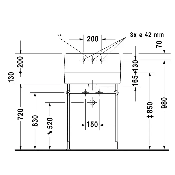 Duravit Vero Консоль напольная металлическая для раковины 100x45,5x78h см, цвет: хром 0030721000