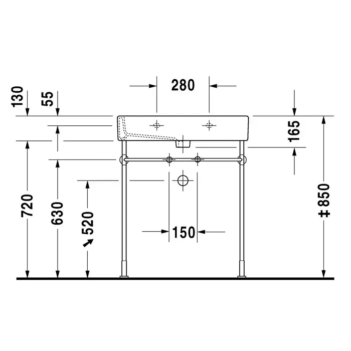 Duravit Vero Металлическая консоль регулировка по высоте + 5 см, хром для умывальника 0030751000