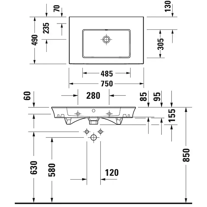 Duravit White Tulip Раковина накладная 105.5x49x15.5h см, с переливом, цвет: белый глянцевый 23631000001
