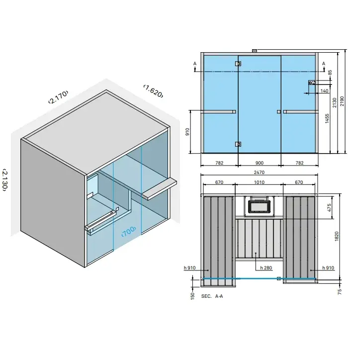 Effegibi Air 80 Сауна 247x182xh213 см, отделка осина термообработанная SA 90 80 0002
