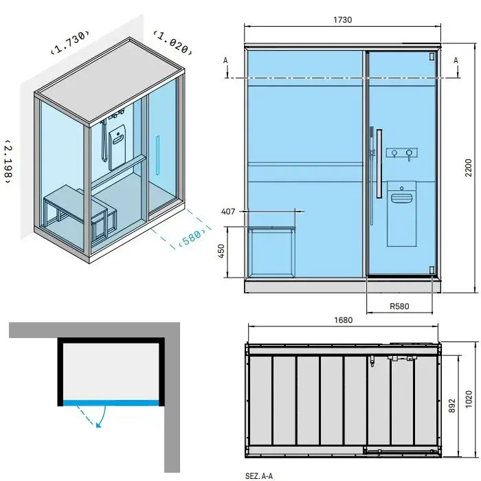 Effegibi H Large Хаммам с душем, угловой R.H., SX, 173x102xh220 см, отделка Soft Sand LO 80 01 0003