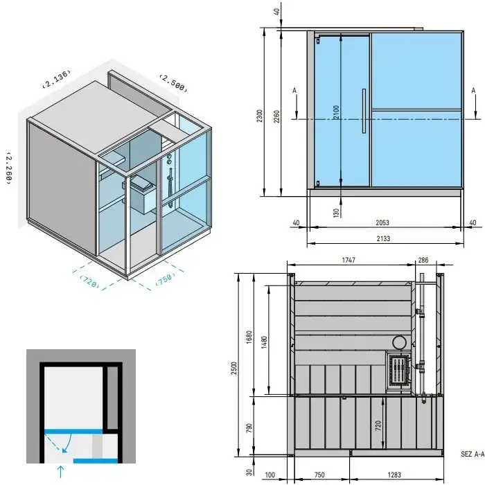 Effegibi Logica S Сауна с душем, пристенная L.H. 214x250xh226 см, отделка Soft Sand LO 20 01 0002