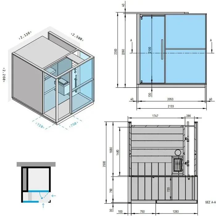 Effegibi Logica S Сауна с душем, пристенная R.H. 214x250xh226 см, отделка Stone LO 20 03 0001