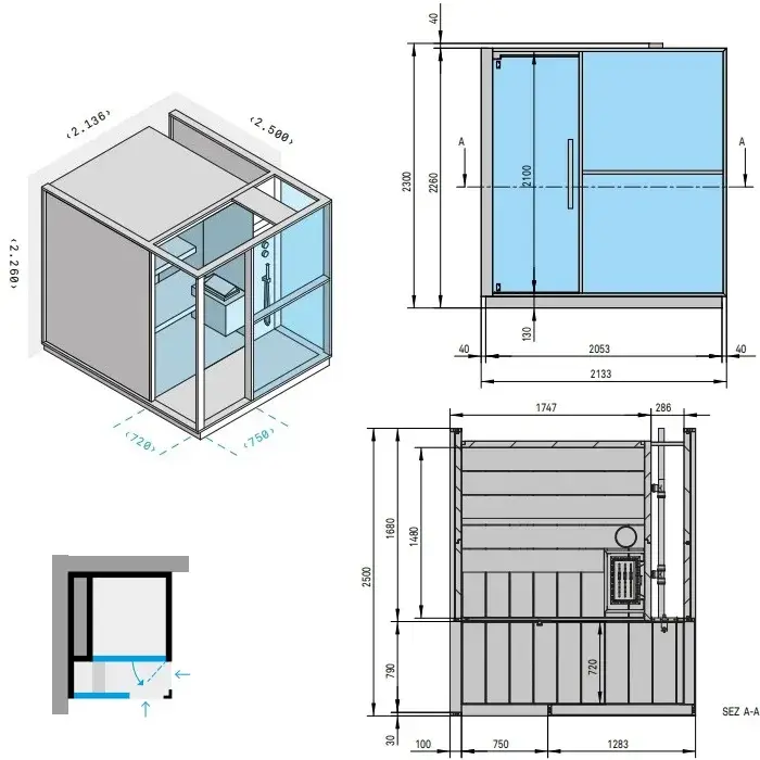 Effegibi Logica S Сауна с душем, пристенная L.H. 214x250xh226 см, отделка Soft Sand LO 20 01 0002