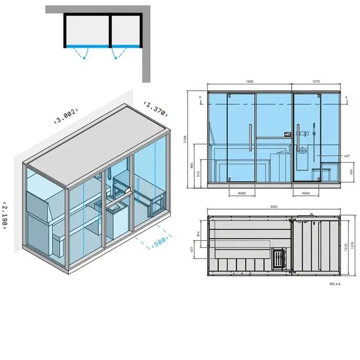 Effegibi Mid Сауна с хаммам и душем, угловая SX, 300x137xh220 см, отделка Soft Sand LO 70 01 0002