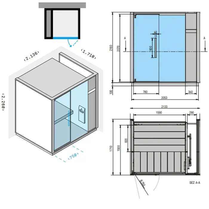 Effegibi One H Хаммам для ниши R.H. 214x171xh226 см, отделка: Soft Sand LO 60 01 0009