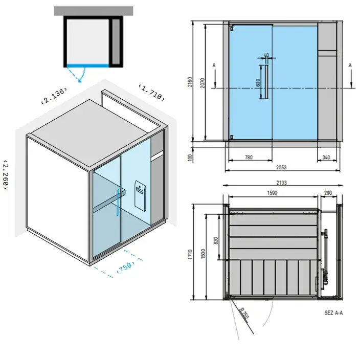 Effegibi One H Хаммам для ниши R.H. 214x171xh226 см, отделка: Soft Sand LO 60 01 0009