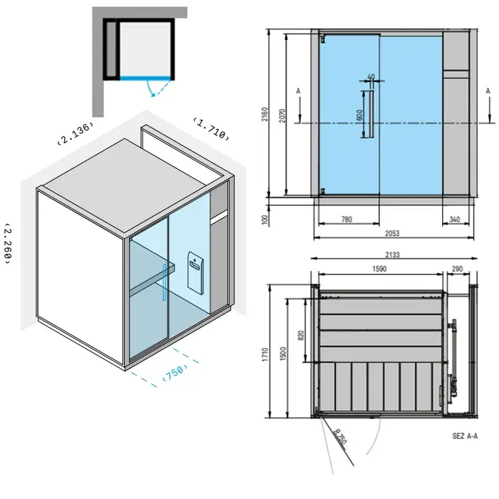 Effegibi One H Хаммам, пристенный L.H. 214x171xh226 см, отделка Soft Sand LO 60 01 0002