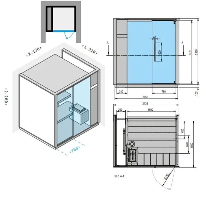 Effegibi One S Сауна для ниши R.H. 214x171xh226 см, отделка Soft Sand LO 50 01 0009