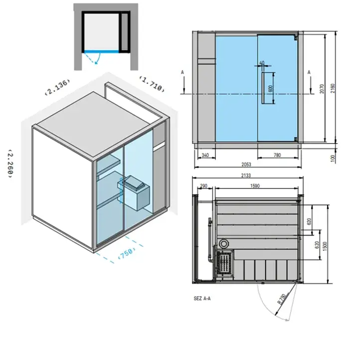 Effegibi One S Сауна пристенная R.H. 214x171xh226 см, отделка: Soft Sand LO 50 01 0001