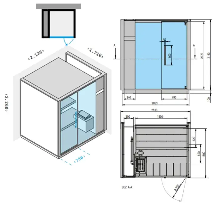 Effegibi One S Сауна пристенная R.H. 214x171xh226 см, отделка: Soft Sand LO 50 01 0001