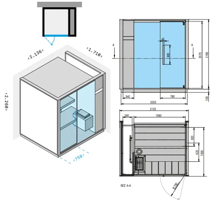 Effegibi One S Сауна пристенная R.H. 214x171xh226 см, отделка: Soft Sand LO 50 01 0001