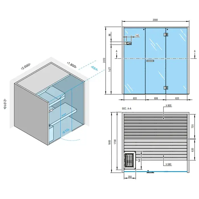 Effegibi Sky 80 Сауна 200x180xh201 см, отделка канадский хемлок SA 55 20 0013
