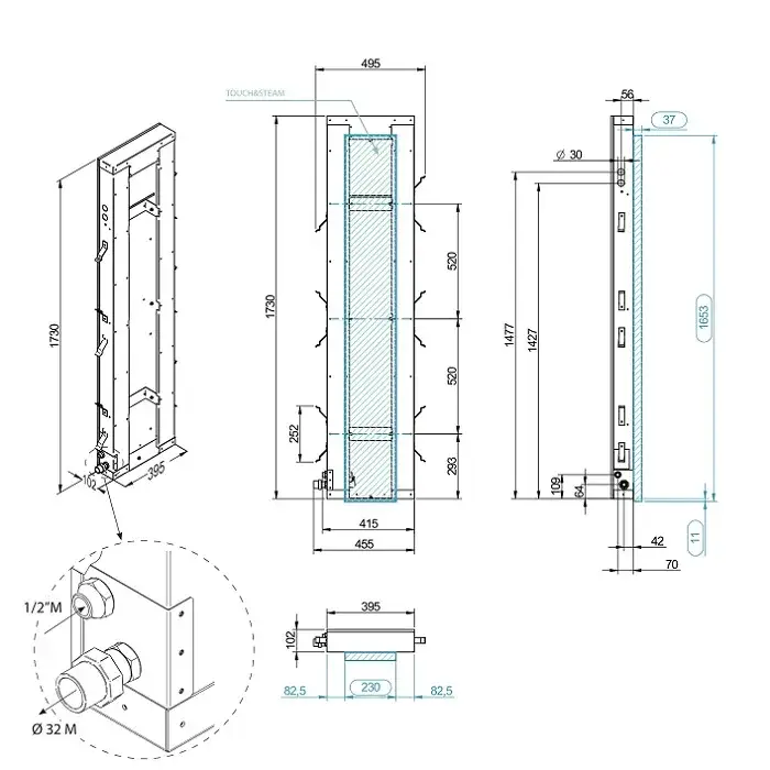 Effegibi Touch&Steam 90 Парогенератор 23х3,7хh167 см, 9 кВт HA CM TS 0022