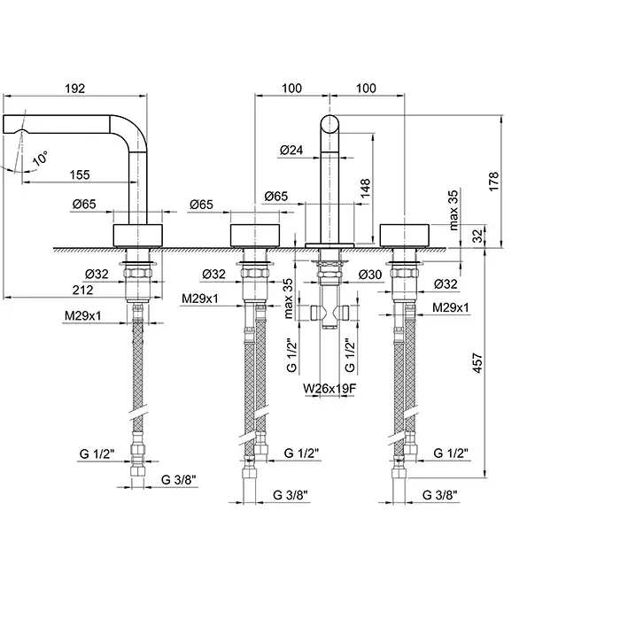 Fantini AF/21 Смеситель для раковины, 3 отв., излив 15,5 см, цвет: матовая натур. сталь 27 93 A206WF