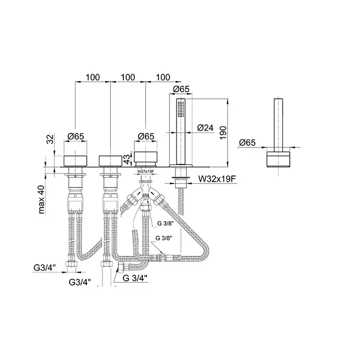 Fantini AF/21 Смеситель на борт ванны, 4 отв., без излива, цвет хром 27 02 A267