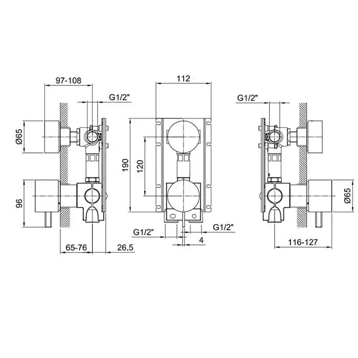 Fantini AF/21 Внутренняя часть смес. для душа, перекл. на 2 источника, цвет мат. сталь 17 00 A585A