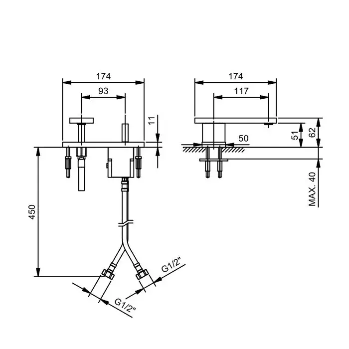 Fantini AK/25 Смеситель для раковины, настенный, цвет Matt Gun Metal PVD 48 P5 T113B