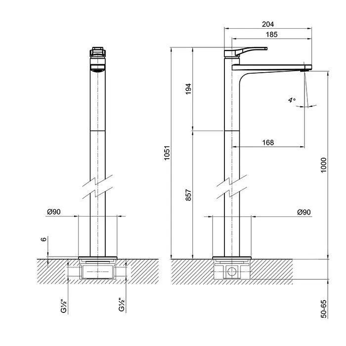 Fantini AL/23 Напольный смеситель для раковины, излив 17 cм, цвет хром 26 02 B036B