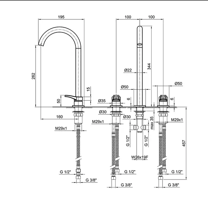Fantini AL/23 Смеситель для раковины, встраиваемый, на 3 отв, излив 20 cм, цвет хром 26 02 B913B