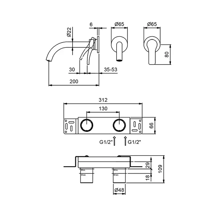 Fantini AL/23 Смеситель для раковины, встраиваемый, на 2 отв, излив 20 cм, цвет хром 26 02 B813B